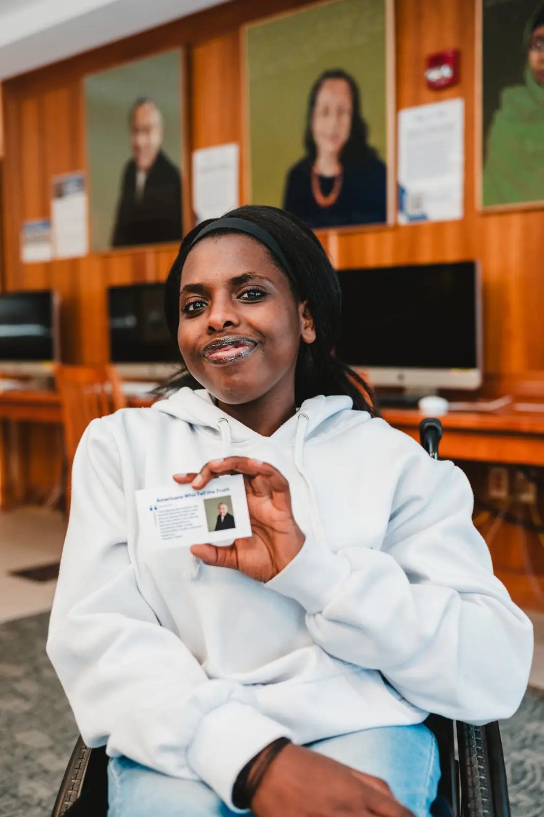 The portraits for the exhibit were chosen by students.  Chance Mutimukeye ‘27 chose the portrait of Gerald E. Talbot, for whom her scholarship program is named.  (Learn more from Chance’s Instagram video.)