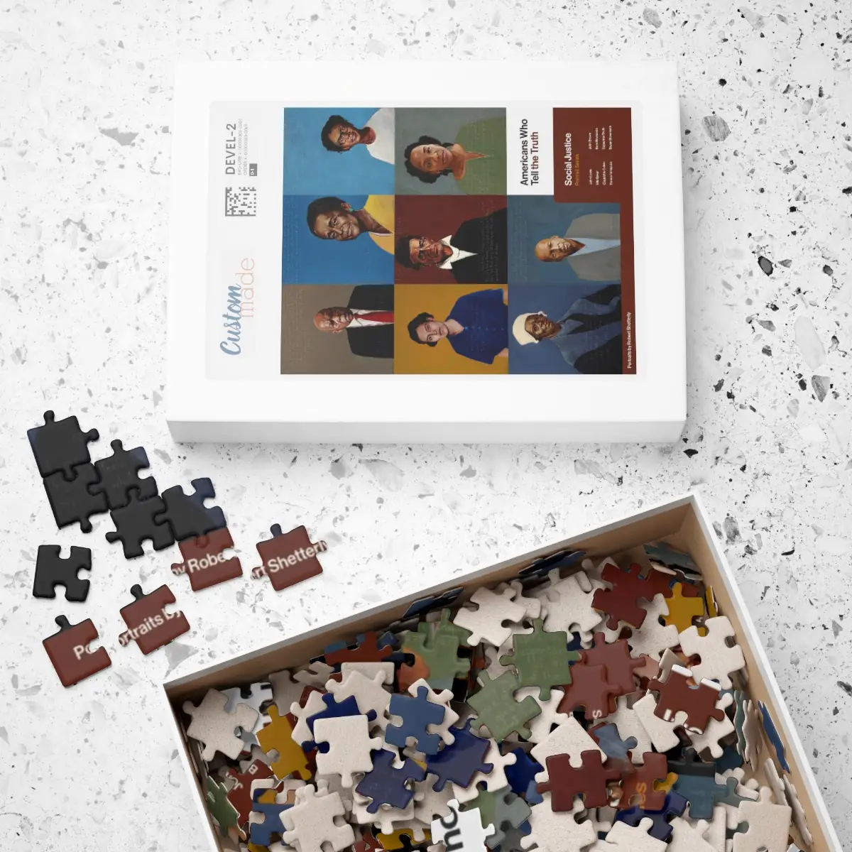 This puzzle comes in a glossy finish. Printed and laminated on sturdy chipboard backing. includes a reference print to easily put the puzzle together.